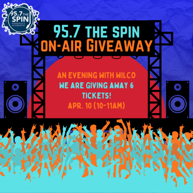 We are giving away tickets on-air for the event, An Evening With Wilco. The dates and times of the giveaways are listed below: